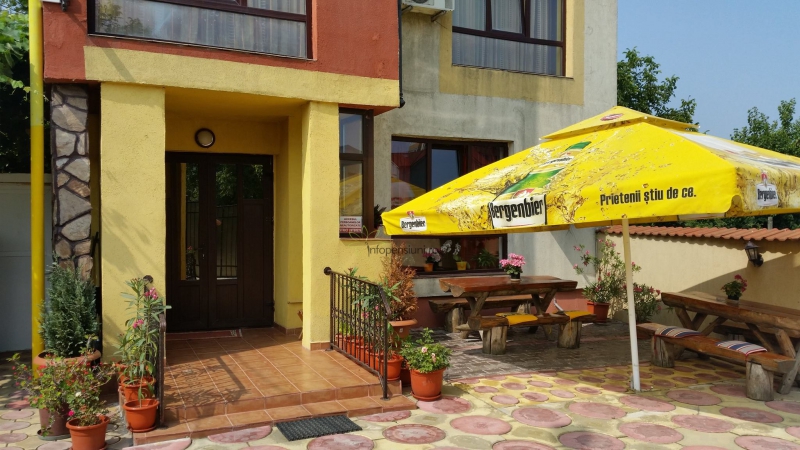 La intrare in Mamaia, Vila dispune de 8 camere duble. Fiecare camera este dotata cu baie proprie, mobilier nou, pat dublu, Tv, internet wireless, frigider, aer conditionat.