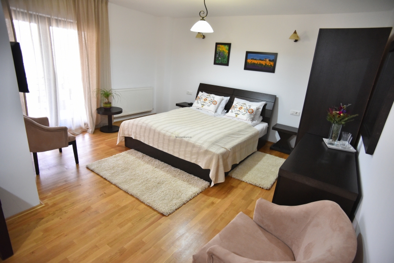 Va oferim cazare intr-o locatie inconjurata de o padure seculara de fagi si stejari, cu 10 camere mobilate modern (2 camere duble standard, 5 camere duble superioare, o suita junior si un apartament cu doua camere), ce iti asigura confort desavarsit, dotate cu televizor, bai moderne, wi-fi, fiecare cu terasa foarte generoasa, dar mai ales caldura si placerea noastra de a va avea ca oaspeti.
