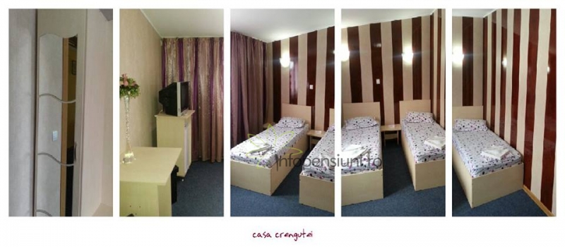 Pensiunea restaurant Casa Crengutei ofera 40 de locuri de cazare in camere single, duble, cu 3 paturi sau matrimoniale.