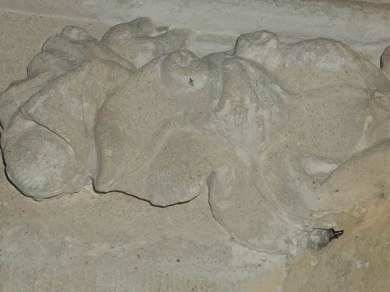 Pe tavanul bisericii, la intersectia arcadelor se afla tot soiul de figuri. Arcele ce pleaca de pe laterale au la baza figuri contorsionate ce par a suporta cu greu povara de a tine tavanul bisericii.