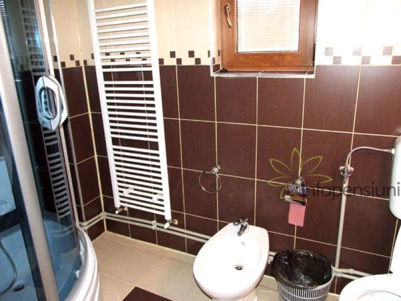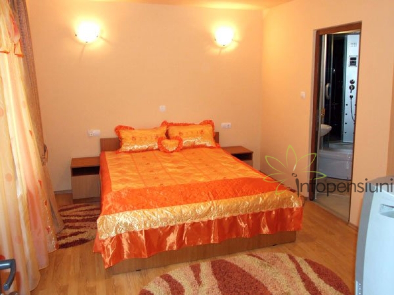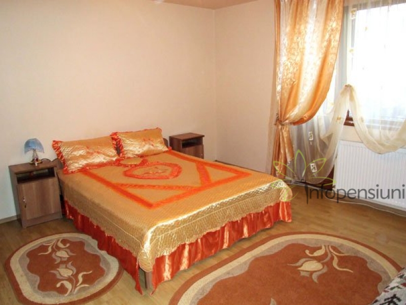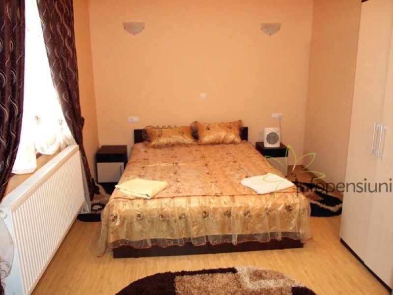 Pensiunea dispune de 16 locuri de cazare in 8 camere duble cu pat matrimonial. Camerele sunt repartizate dupa cum urmeaza: la parter se afla 2 camere duble 1baie, o sufragerie dotata cu coltar, televizor, calculator conectate la internet,la etaj sunt 3 camere duble 1 baie, si mai sunt 3 camere duble cu baie proprie( adica 3 bai)