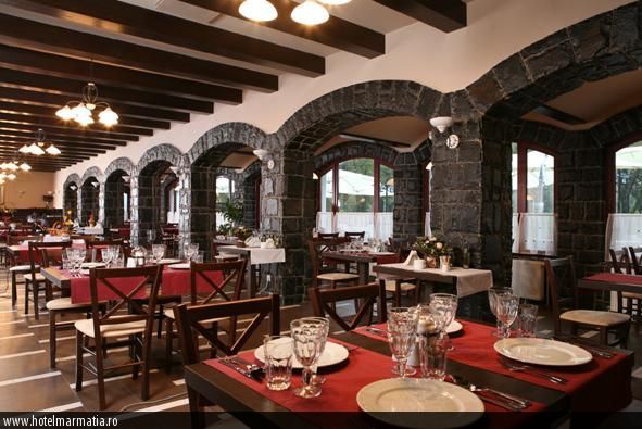 Hotelul Marmatia este un brand pentru orasul Sighetu Marmatiei, fiind cel mai nou hotel de lux destinat pentru turismul de agrement sau business din Tara Maramuresului. Arhitectura veche, dotarile moderne la standarde europene, ambientul special, sunt doar cateva motive pentru care oaspetii hotelului isi propun sa revina la Marmatia. Restaurantul are capacitatea de 140 de locuri, aici avand posibilitatea sa alegeti din meniul variat, preparate traditionale romanesti cat si internationale, vinuri din podgorii renumite, intr-o ambianta muzicala placuta. Pe terasa restaurantului (capacitate 80 locuri) se pot petrece clipe placute in aer liber si se pot desfasura mese campenesti, picnic langa raul Iza si barbeque cu foc de tabara in zona special amenajata. Adresa: Mihai Eminescu 97, 435500, Sighetu Marmatiei Telefon: 0372.721.210; 0372.721.211 E-mail: contact@hotelmarmatia.ro Website: www.hotelmarmatia.ro